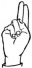 На ћирилици написано ДАРИЈА ПАВКОВ састоји се из 12 слова [?]. Исписано ћириличном једноручном азбуком за глувонеме: